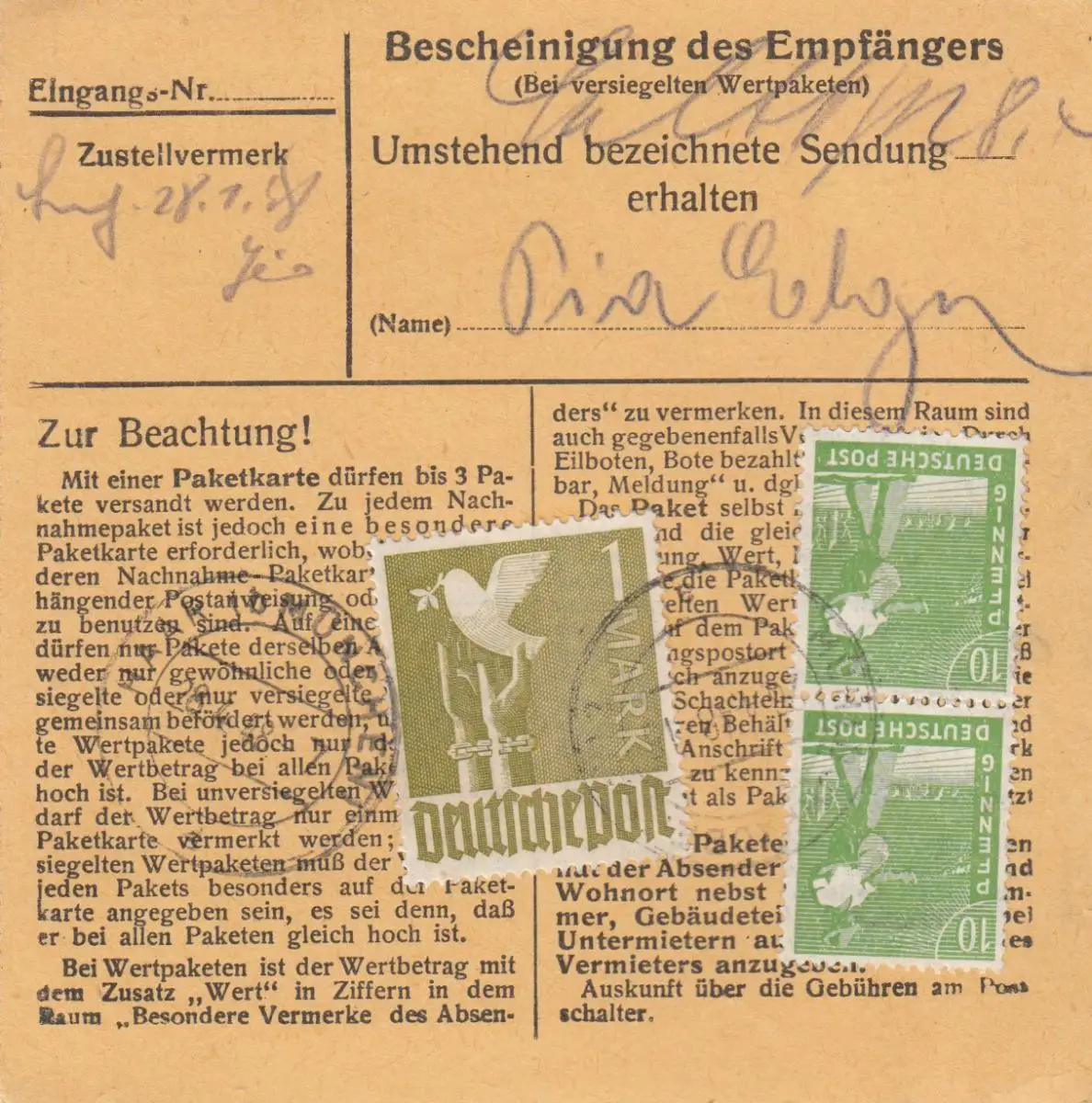 Carte de paquet 1948: Mettenheim Mühldorf après Haar