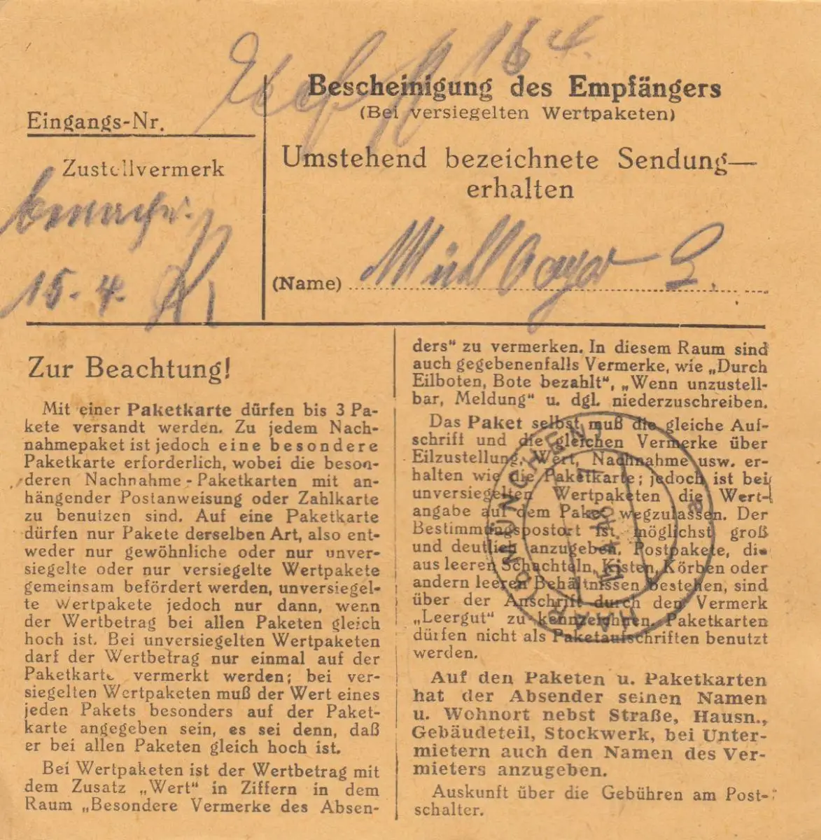 Carte de paquet 1948: Miesbach vers Haar - Munich