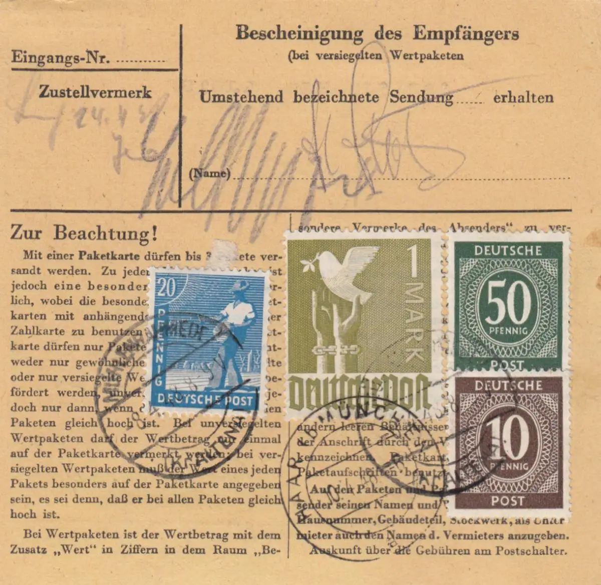 Carte de paquet 1948: Mühlenrahmèdee par Haar, carte de valeur, Stogos GmbH