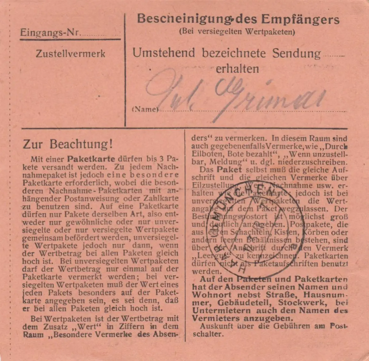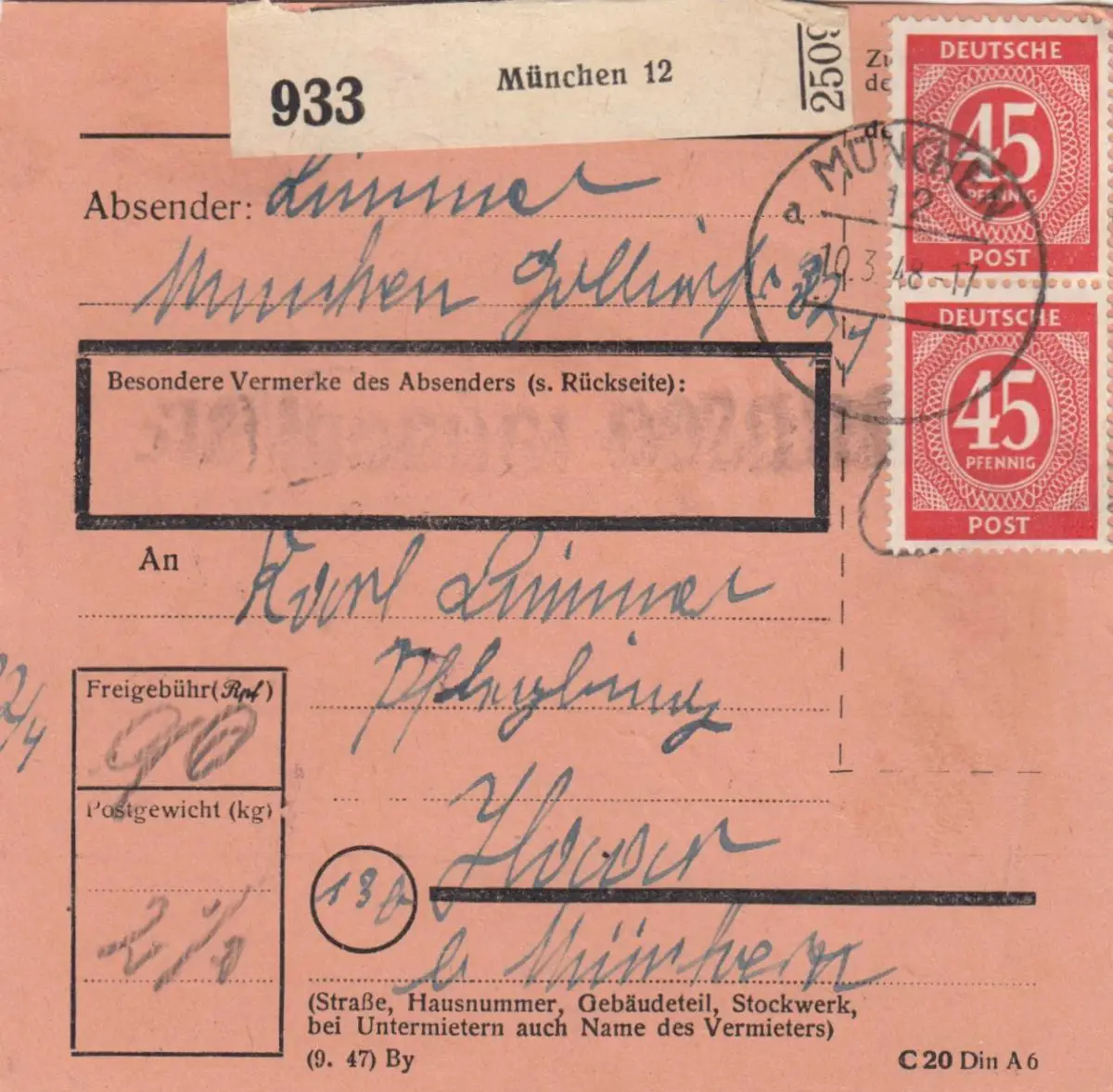 Carte de paquet 1948: Munich 12 après Haar b. Munich