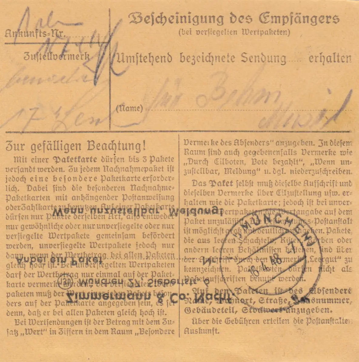 Carte de paquet 1948: Munich 27 par Haar, Auto-bookeur, Dentist
