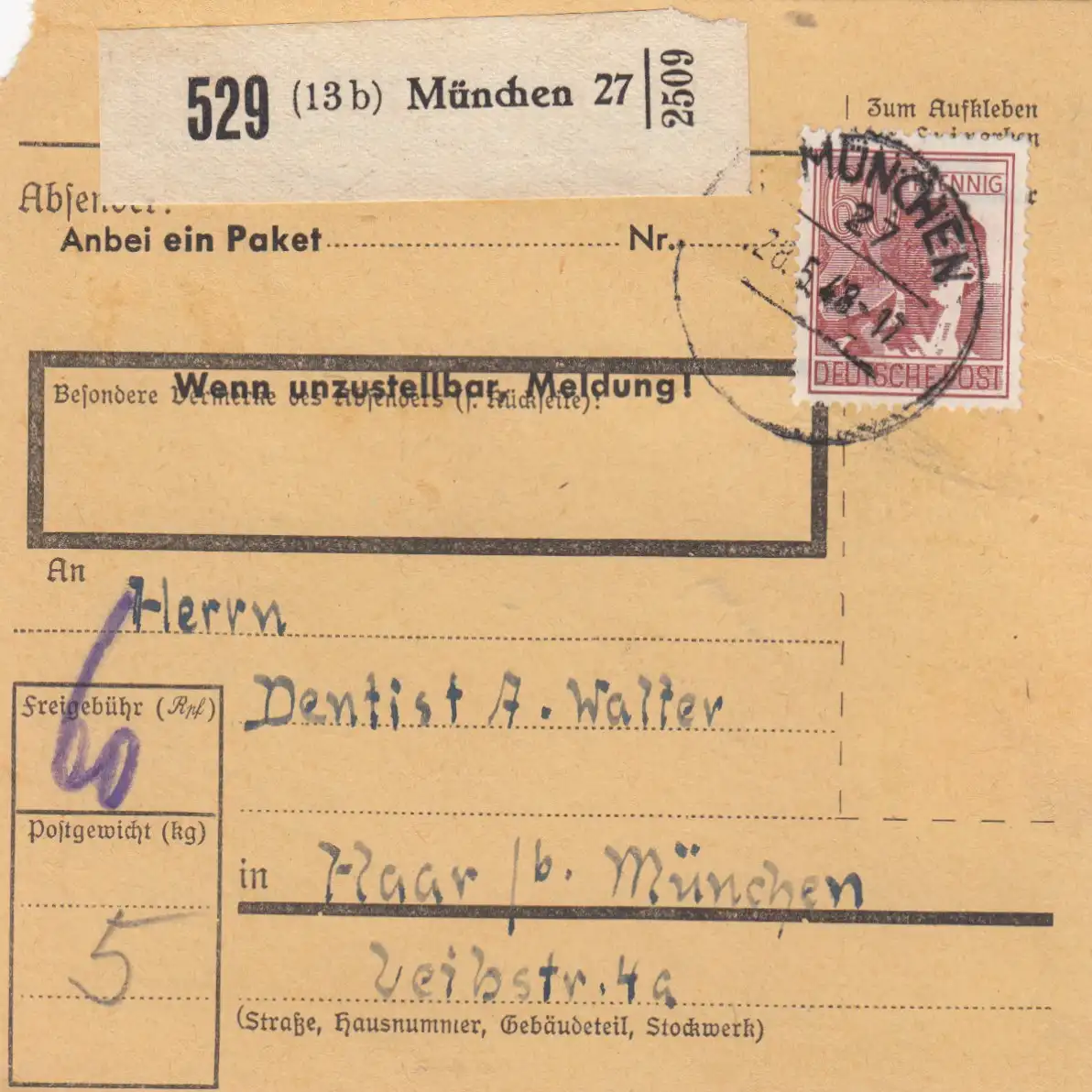 Carte de paquet 1948: Munich 27 vers Haar bei Munich