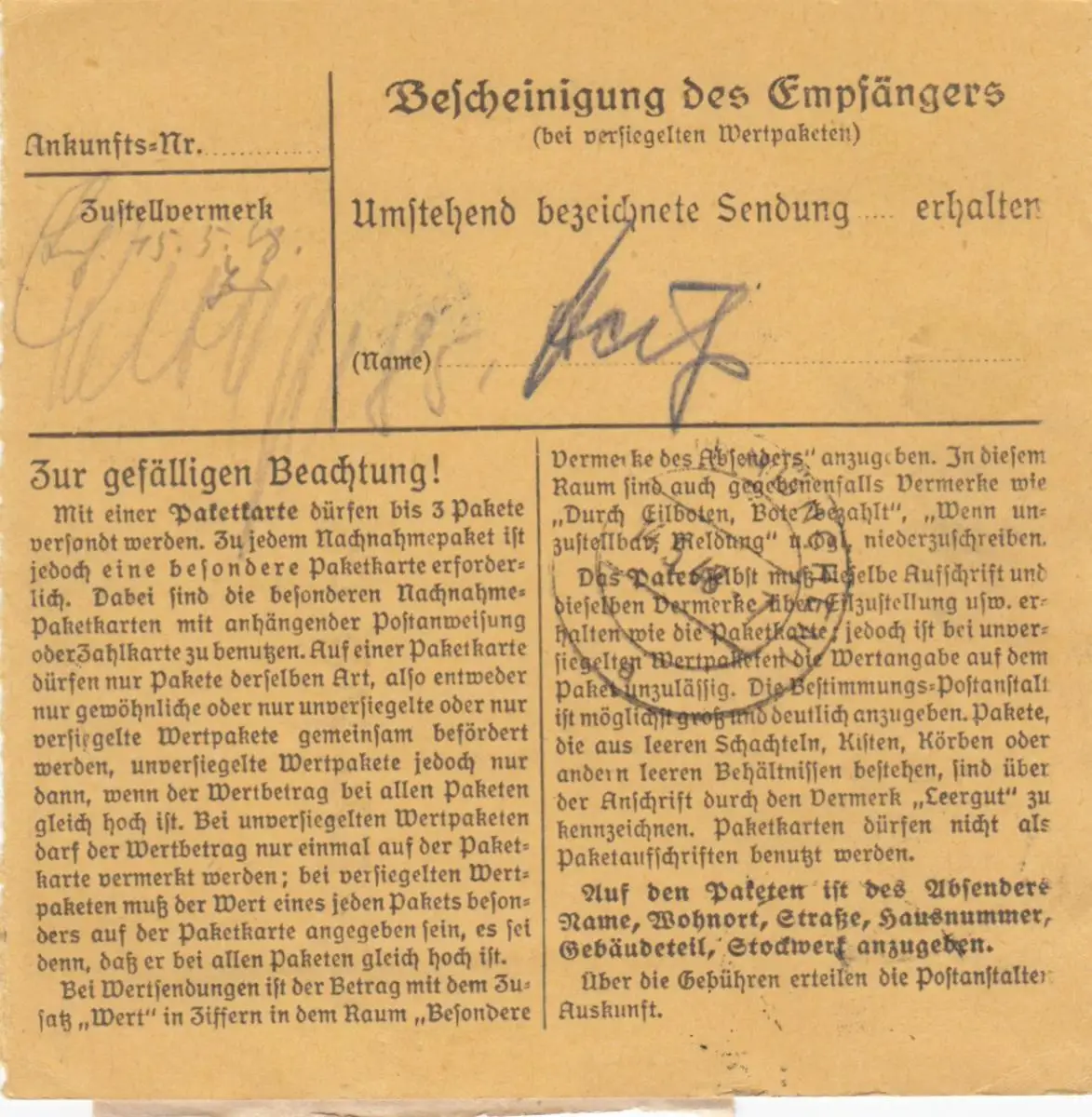 Carte de paquet 1948: Munich, grossiste dentaire selon les cheveux