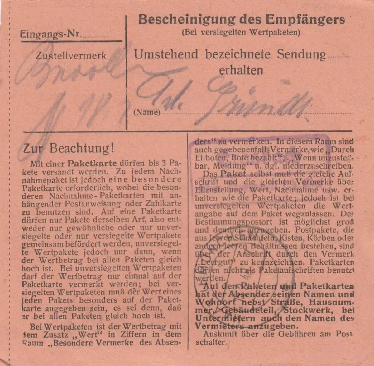Carte de paquet 1948: Neumarkt a Eglfing