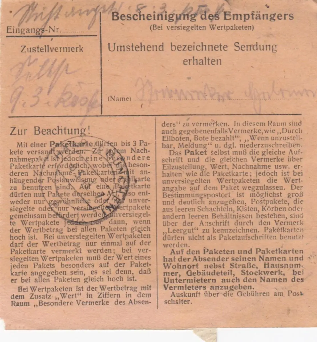 Carte de paquet 1948: Neustadt par Haar