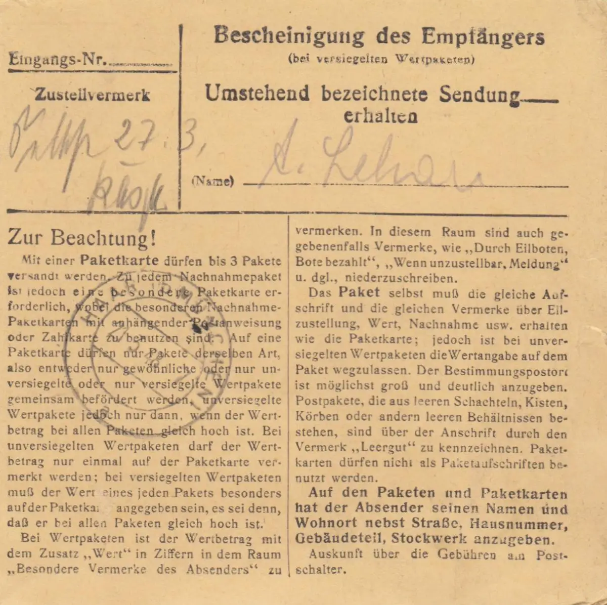 Carte de paquet 1948: Oberesslingen par Grasbrunn