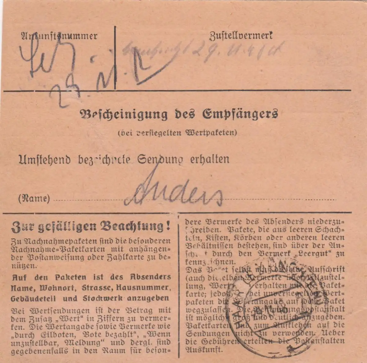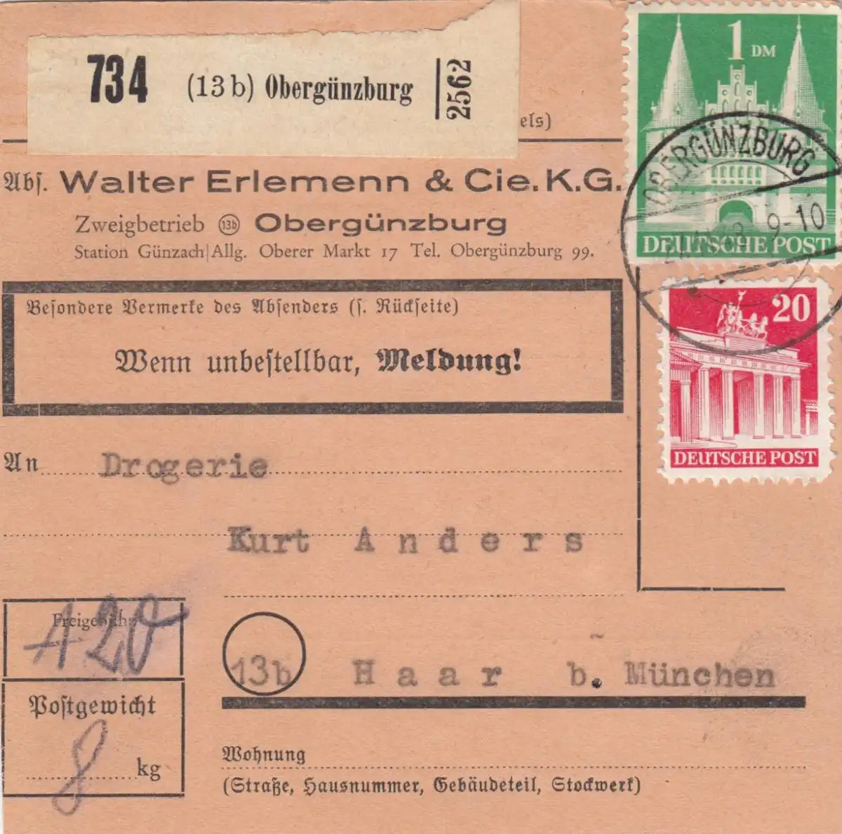 Carte de paquet 1948: Obergünzburg vers Haar bei Munich