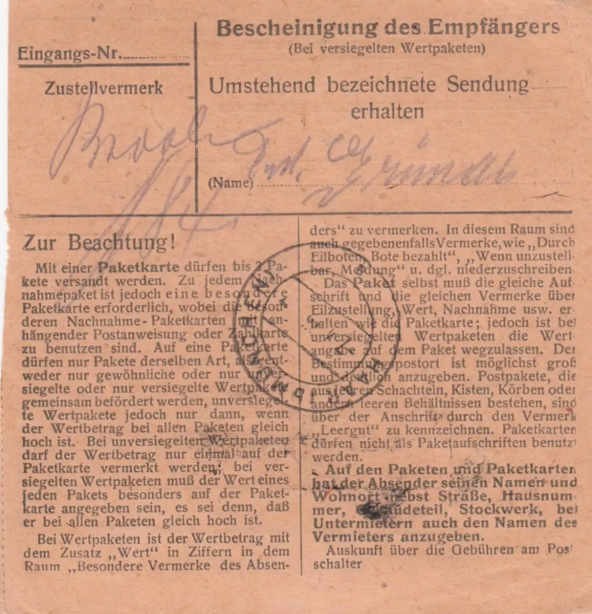 Carte de paquet 1948: Olching vers Eglfing House 6, établissement de soins