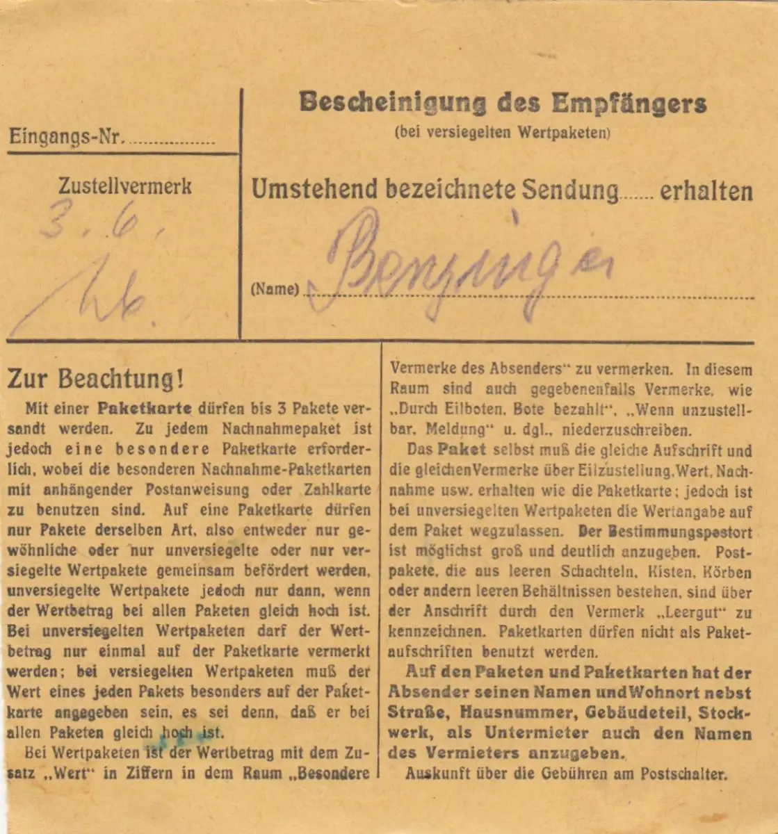 Carte de paquet 1948: Peisenberg à Munich