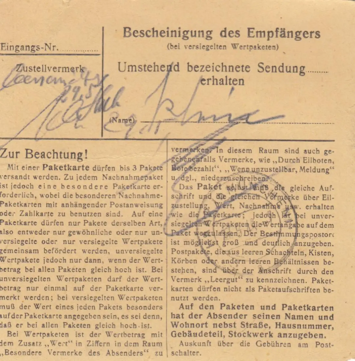 Carte de paquet 1948: Schwarzhofen Obpf. par cheveux