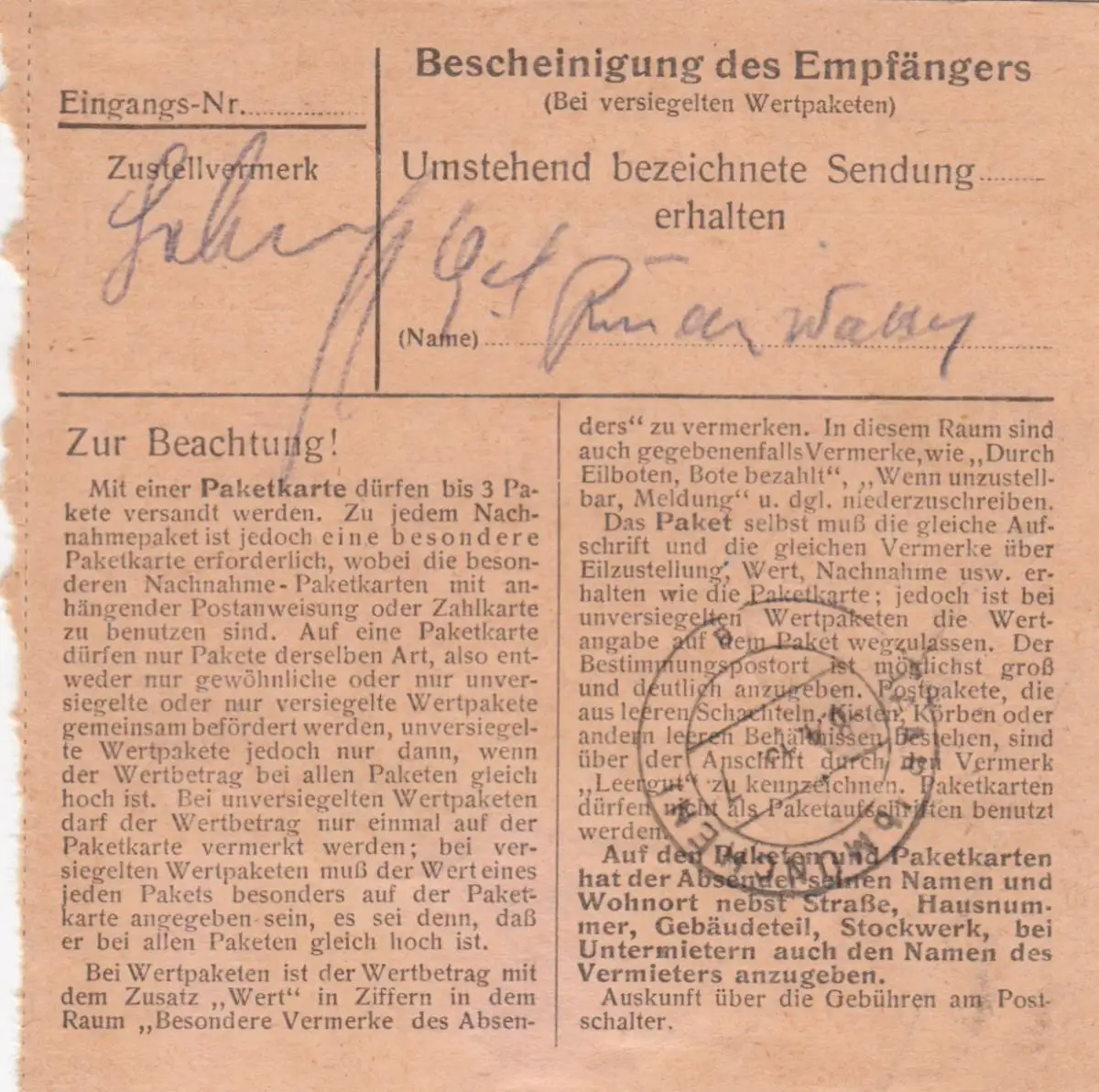 Carte de paquet 1948: Schweitenkirchen vers Haar bei Munich