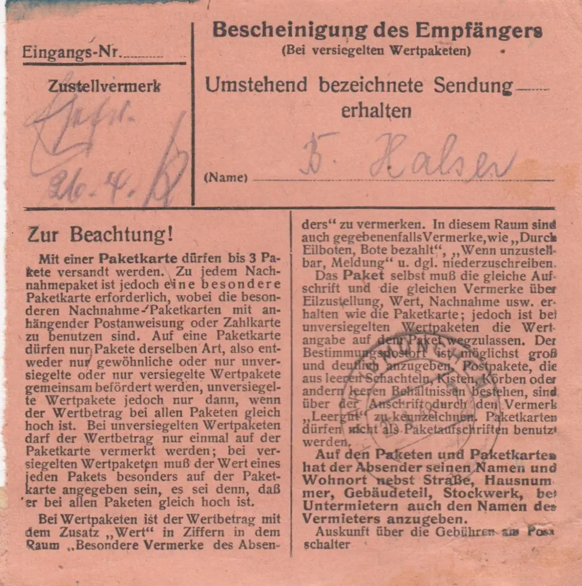 Carte de paquet 1948: Straubing par cheveux