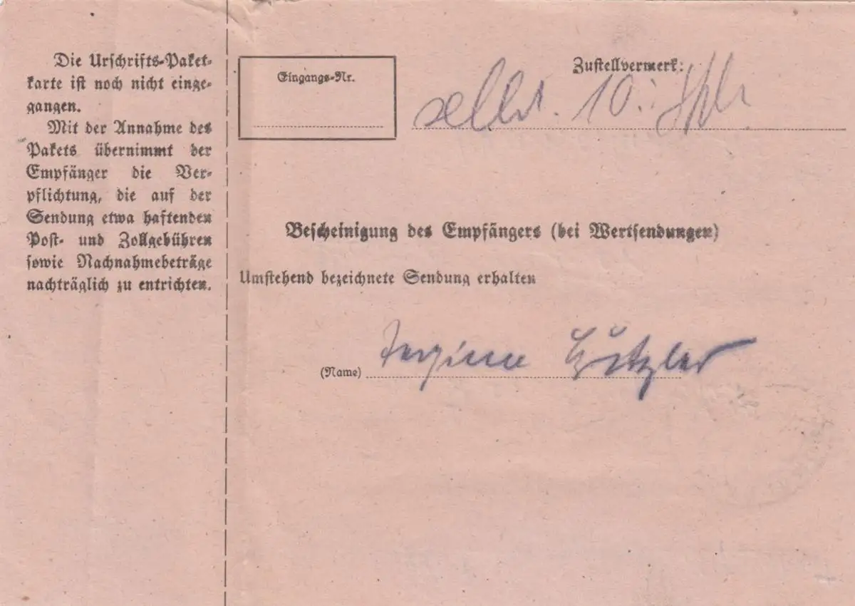 Carte de paquet 1948: Trappstadt n. Munich, carte de valeur, avec carte d'urgence