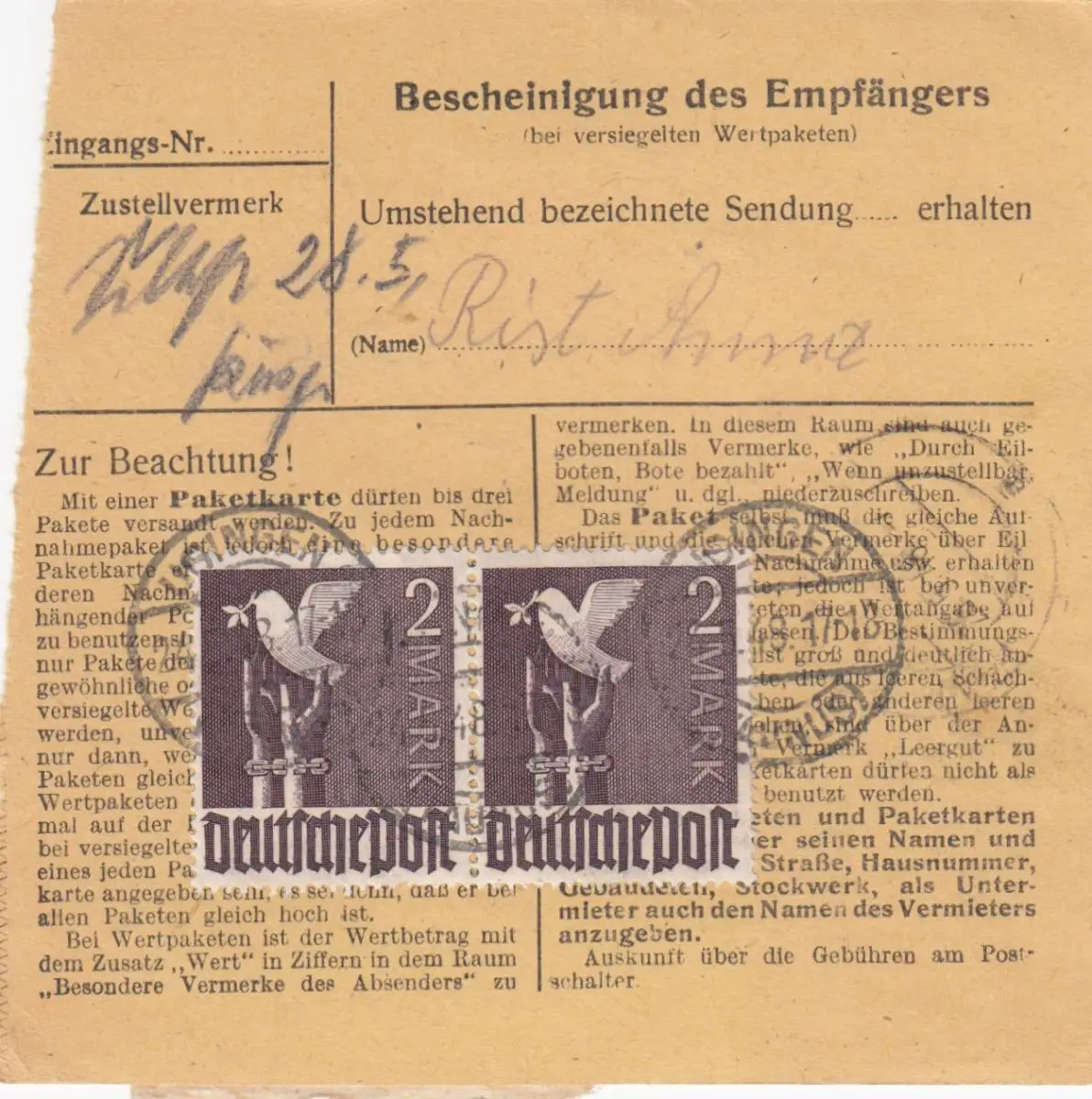 Carte de paquet 1948: Usingen Taunus après Keferloh Haar
