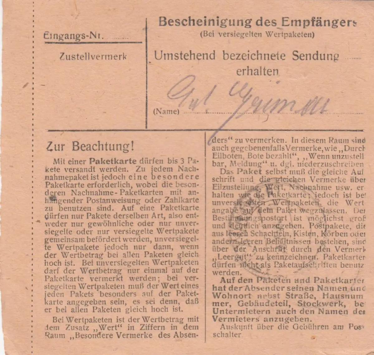 Carte de paquet 1948: Ami-ami Grainet avant après Eglfing
