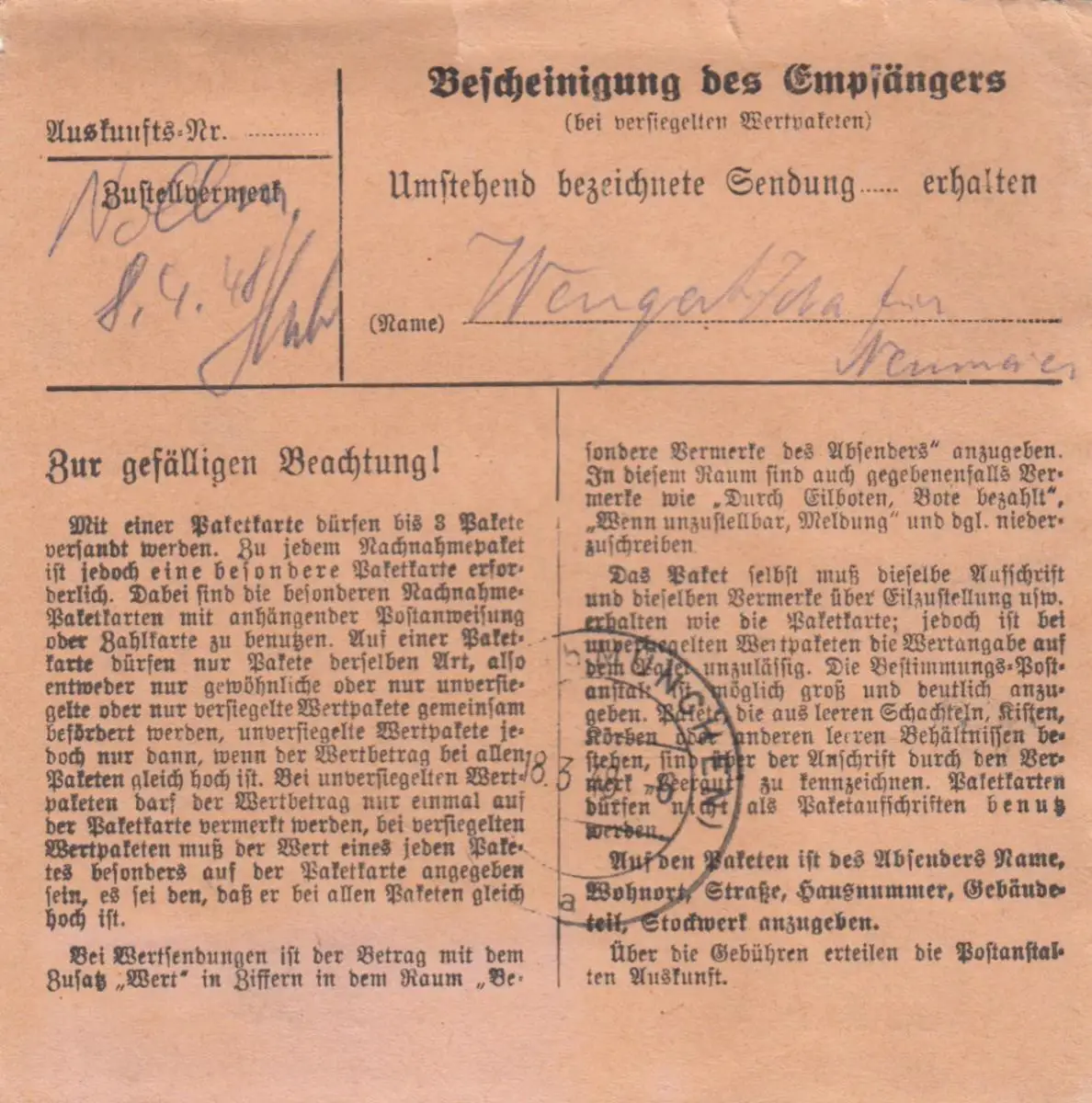 Carte de paquet 1948: saule par cheveux, auto-réservation