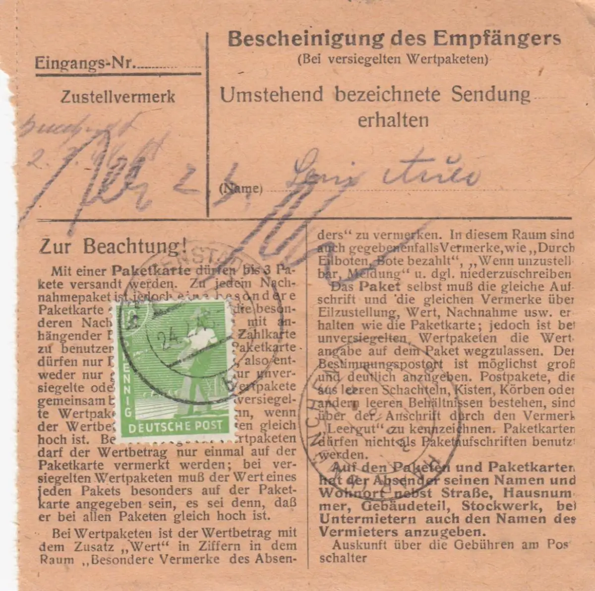 Carte de paquet 1948: Ville Blanche par cheveux, carte de valeur