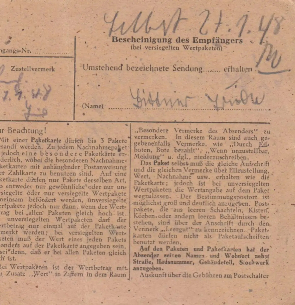 Carte de paquet 1948: Wietzen après Haar bei Munich