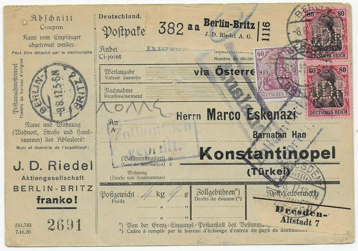 sehr schöner und seltener Bahnpostbeleg aus Britisch Indien F4 OUT / SET N°1 mit Mischfrankatur King Edward / King George 1912 nach nach Frankfurt am Main versandt. Ich bin sehr zufrieden, vielen Dank!