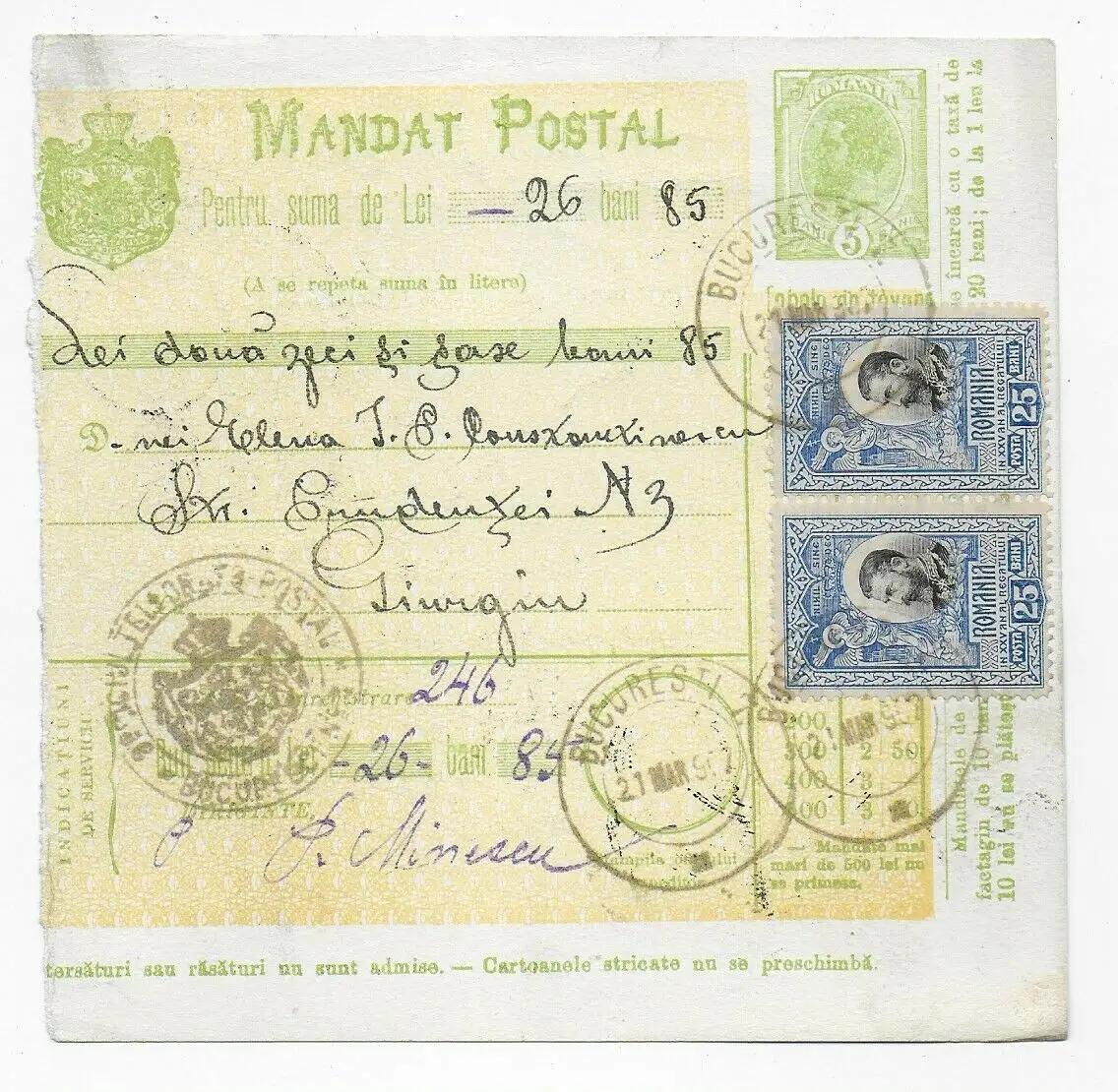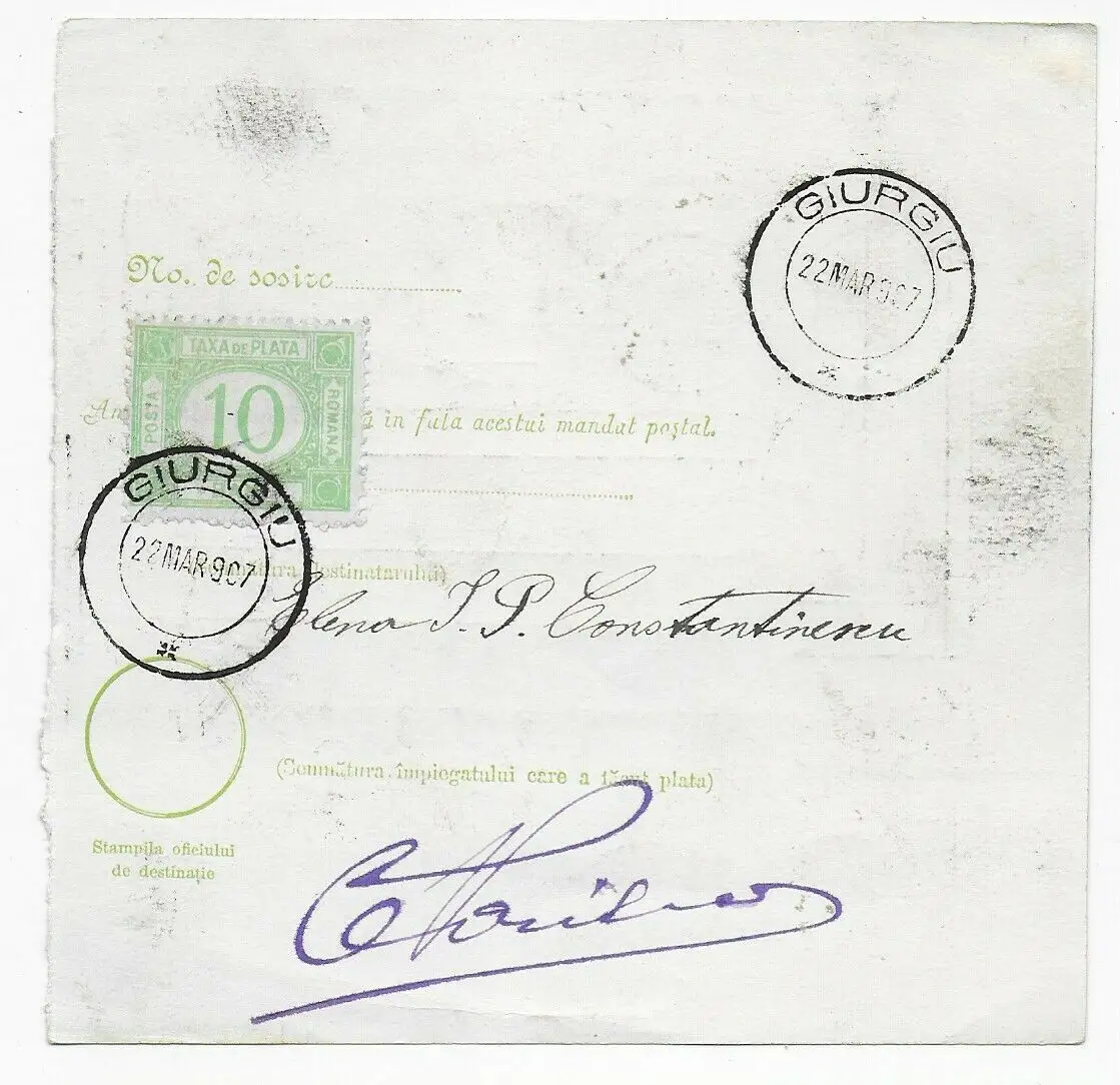 Carte de paquet Bucarest 1907 vers Giurgiu