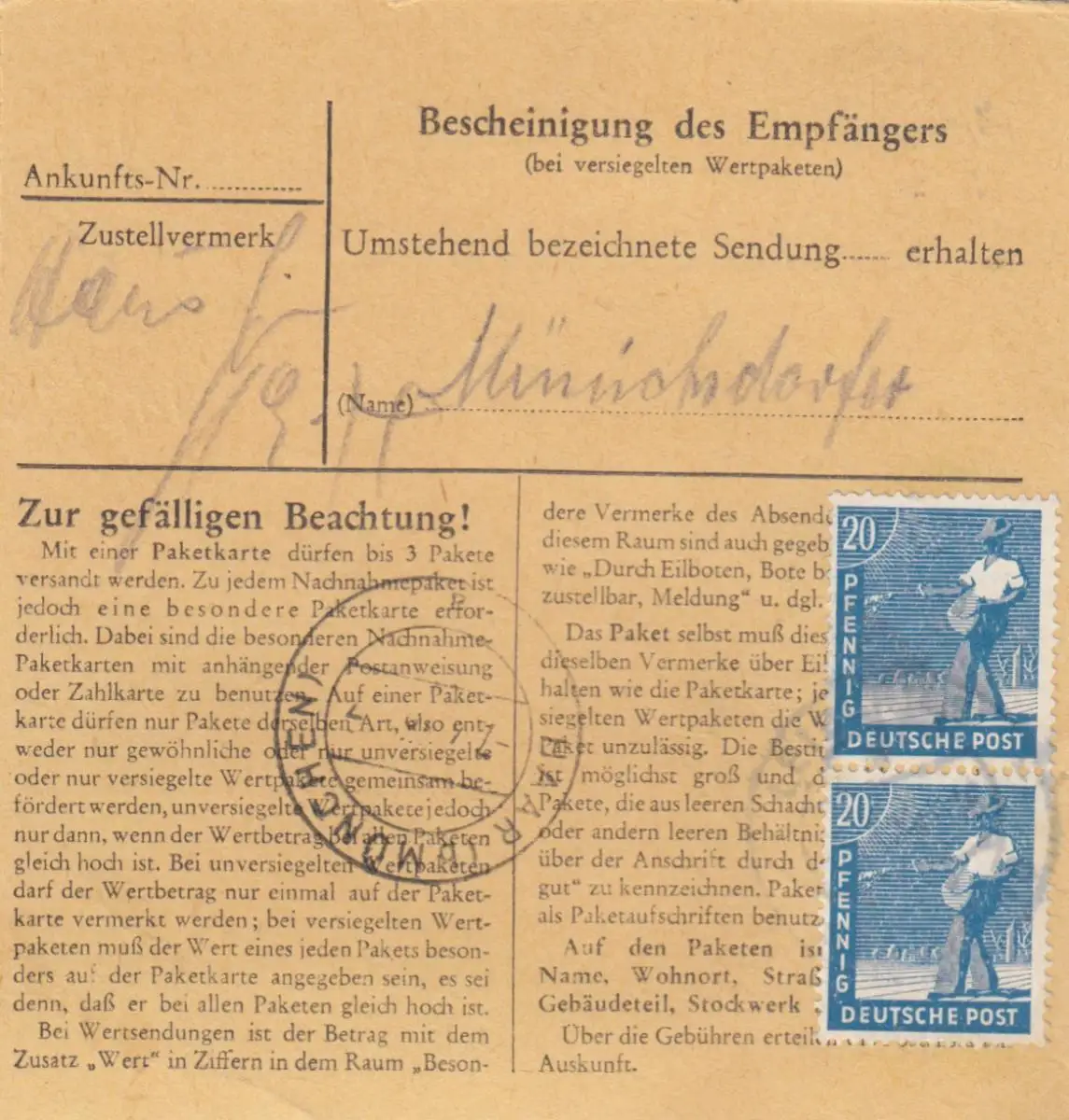 Carte de paquet: Leiblfing après Haar b. Munich