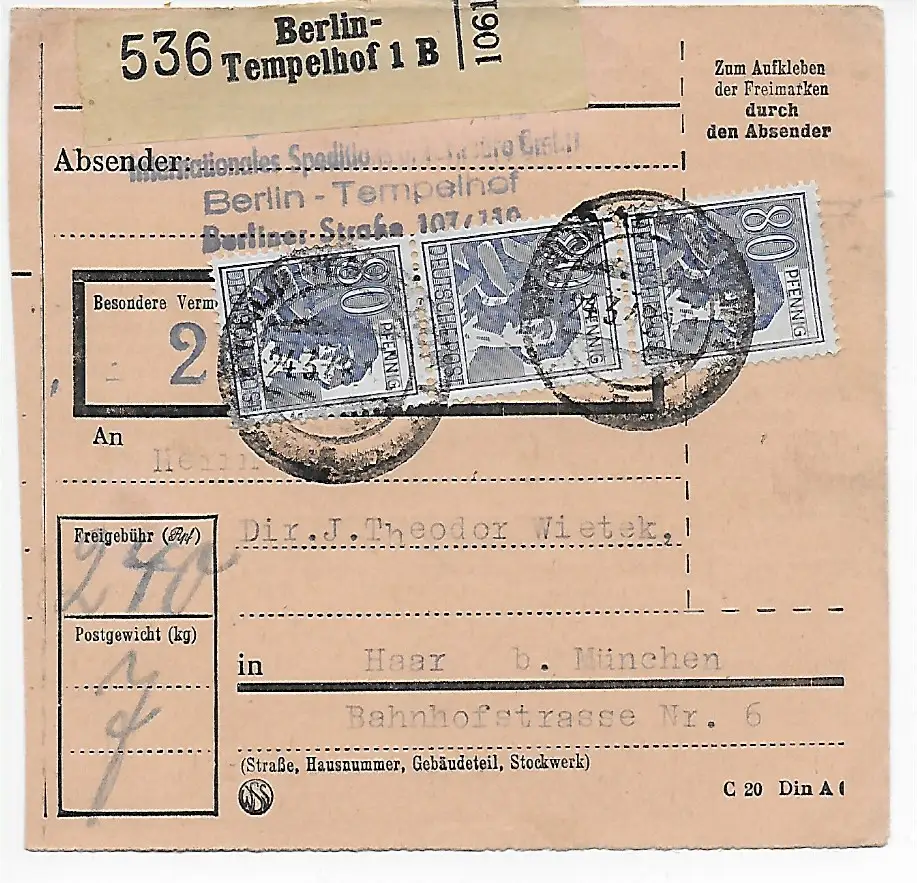 Carte de Berlin-Tempelhof à Haar, 1948, MeF