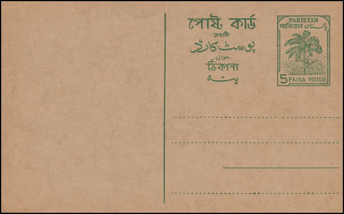 Pakistan Carte postale / Post Card Palmen Palmiers 5 Paisa, non utilisé **