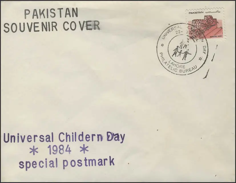 Pakistan: Souvenir Cover Universital Cheldren Day 1984, SSt Lahore 1984