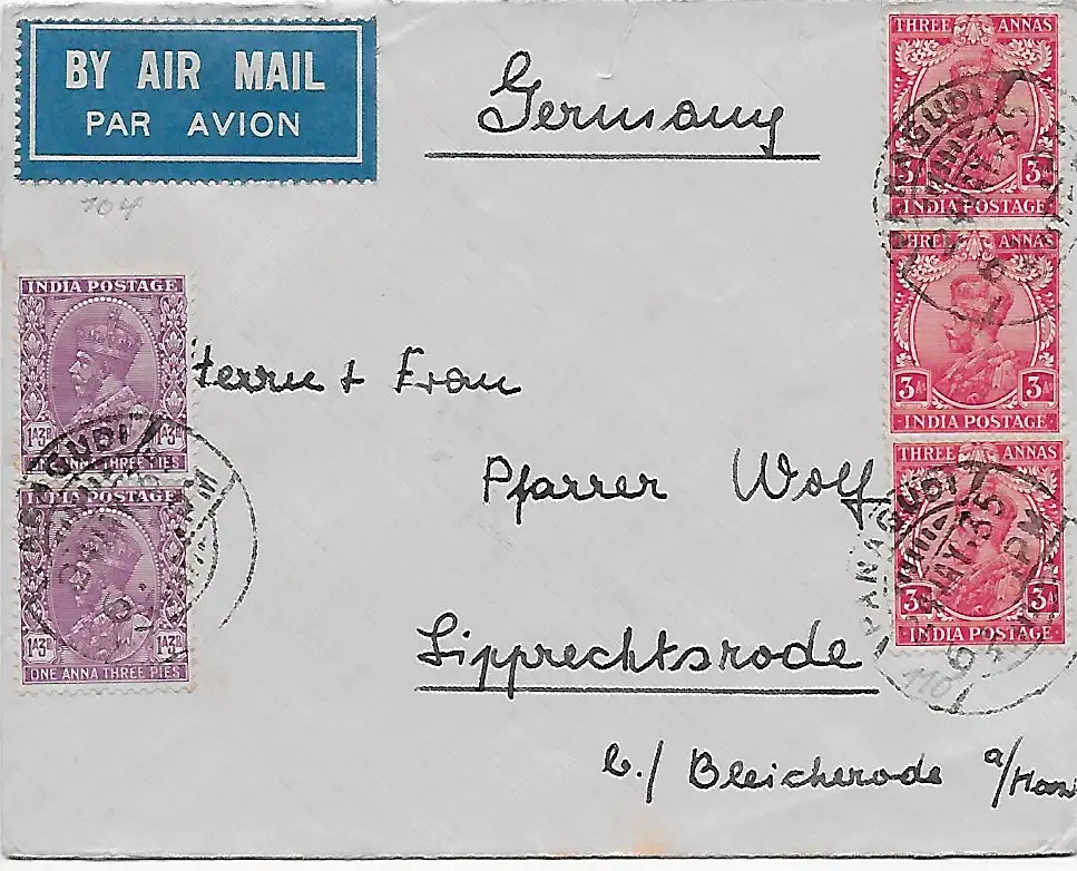 sehr schöner und seltener Bahnpostbeleg aus Britisch Indien F4 OUT / SET N°1 mit Mischfrankatur King Edward / King George 1912 nach nach Frankfurt am Main versandt. Ich bin sehr zufrieden, vielen Dank!