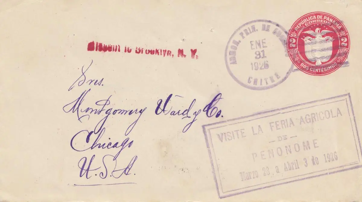Panama 1928: Chitre to Chicago via Penonome, Missent