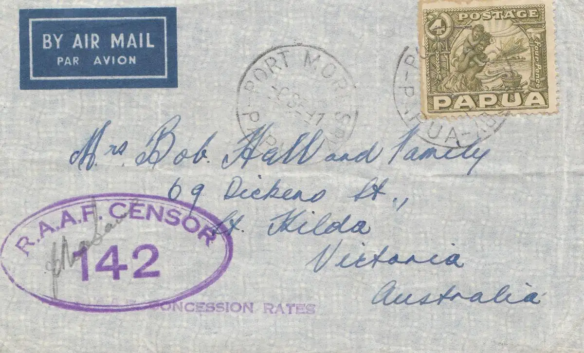 Papouasie 1941: Air Mail Port Mort to Victoria/Sur.- RAAF Censor-Concession Conseil