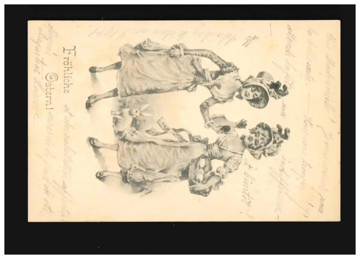 Pâques jeunes femmes joyeuses collecte d'œufs de lapin de PÂques, Zöptau/Petersdorf 2.4.1901