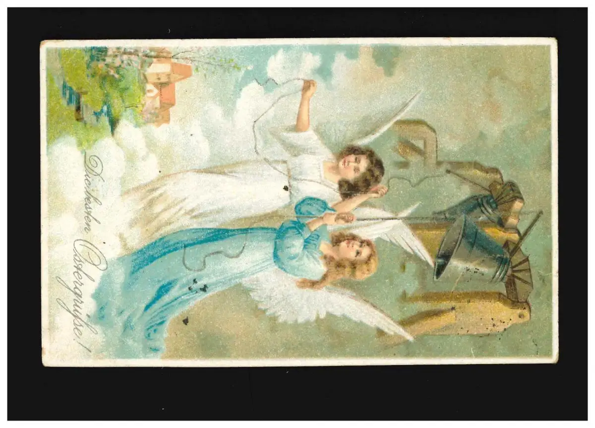 Pâques les meilleurs salutations de Père, anges sonnent des cloches dans le ciel, couru 11.4.1923