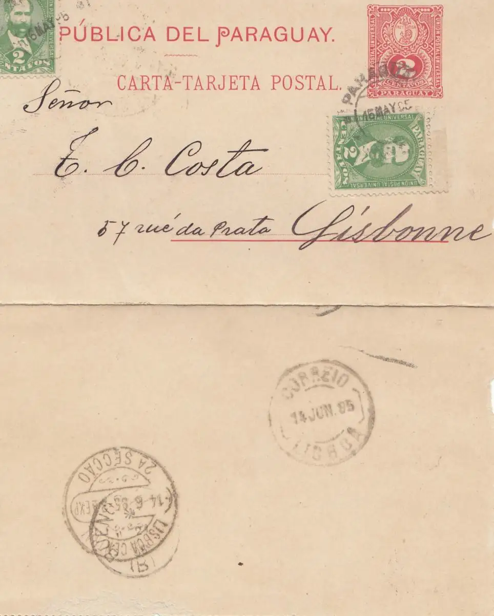 Paraguay 1895: post card Ausuncion to Lisbonne/Portugal