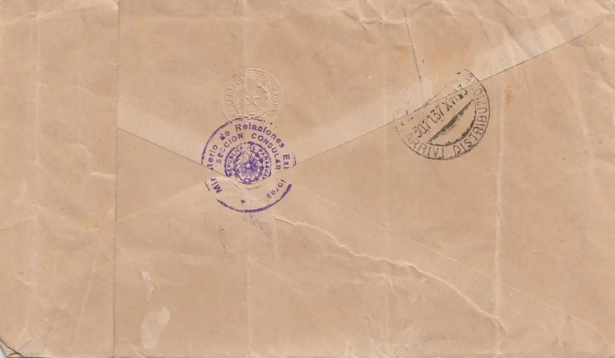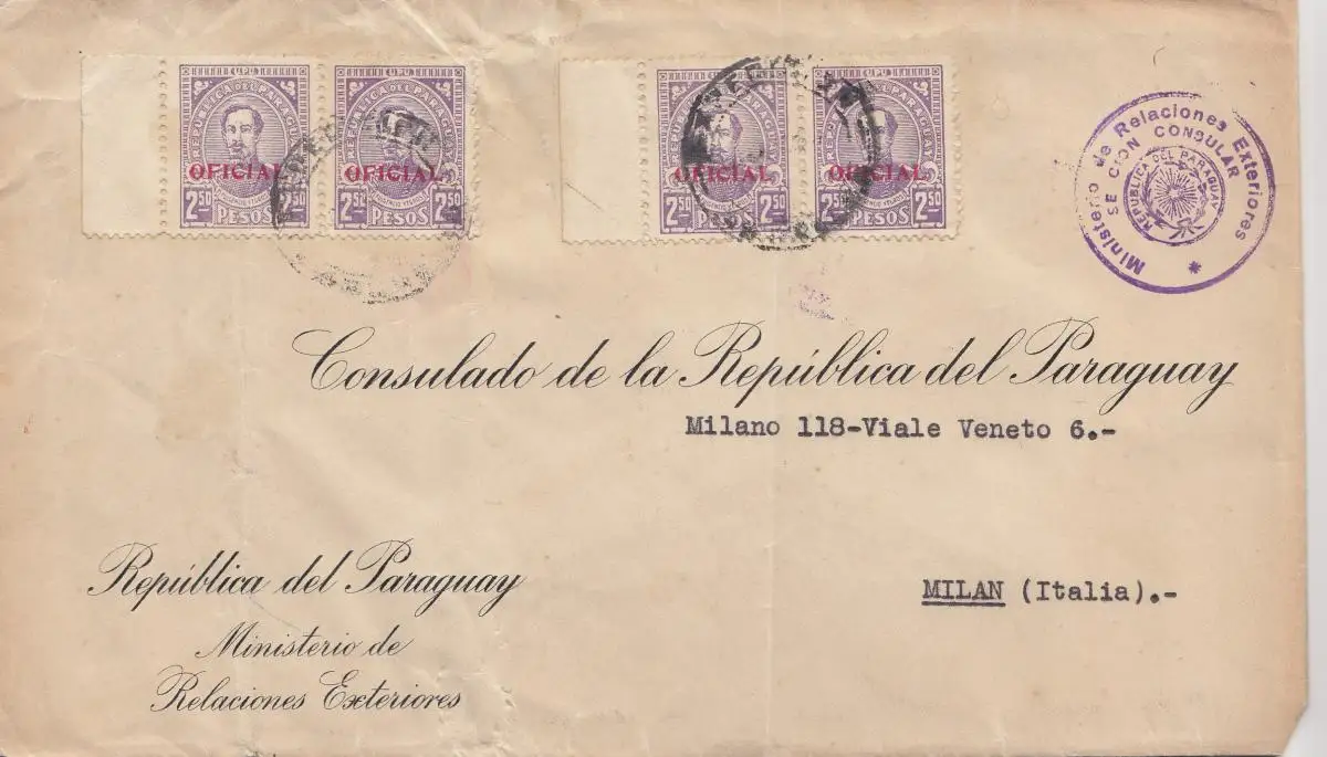 Paraguay 1937: Ministerio de Relaciones Exteriores to Milano/Italy