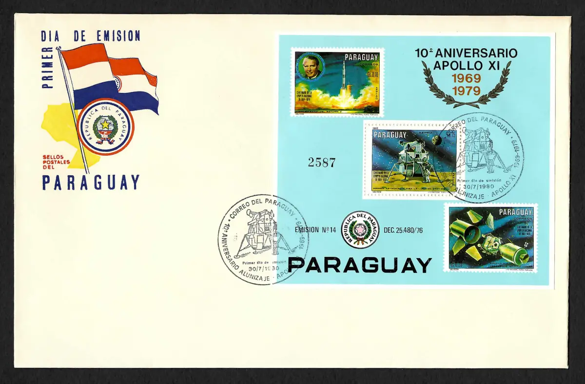 Paraguay 1980: 10. Jahrestag Apollo XI, FDC