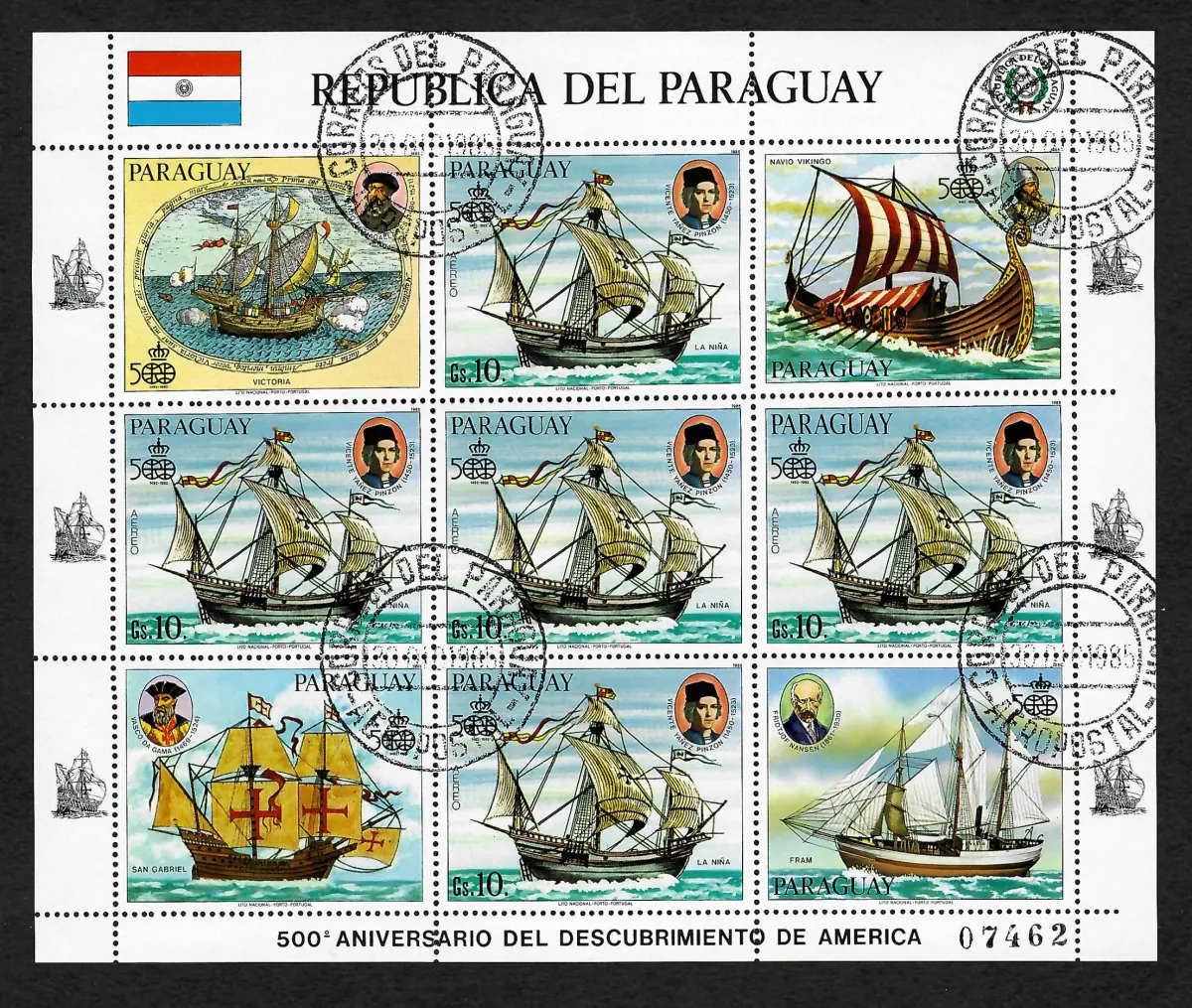 Paraguay 1985: Schiffe, Seefahrer, Block gestempelt 500 Jahre Entdeckung Amerika