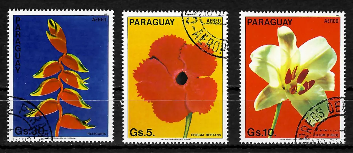 Paraguay: 3x Briefmarken mit Blumen gestempelt