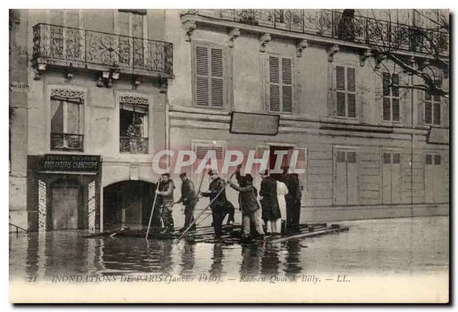 Paris 16 - Inondations de Paris - Janvier 1910 - Radeau Quai de Billy - Cartes postales