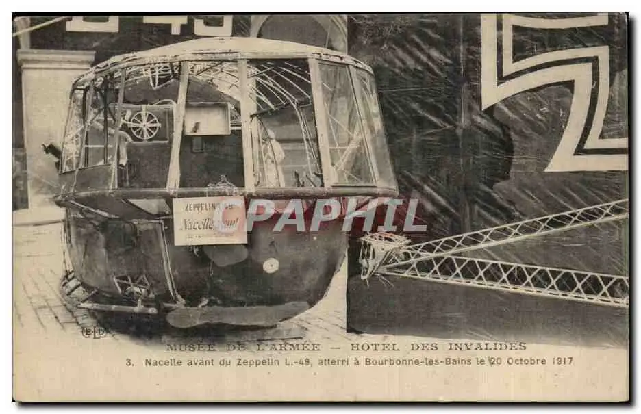 Paris Cartes postales Musee de l'armee Hotel des Invalides Nacelle avant du zeppelin L 49 atterri a Bourbonne