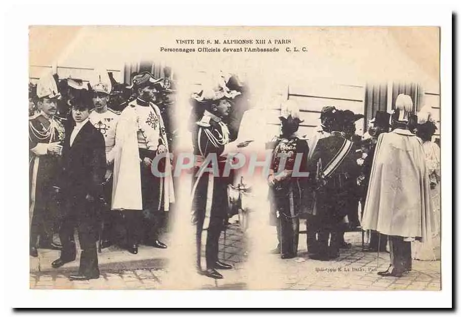 Paris Cartes postales Visite de S M Alphonse XIII a Paris personnages officiels devant l&#39Ambassade