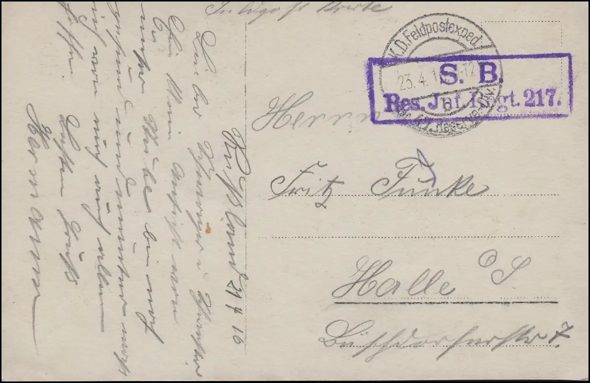 Tampon de cadre "S.B. Res. Régiment d'infanterie 217" Examen: original Numéro d 'article: 00000000028026