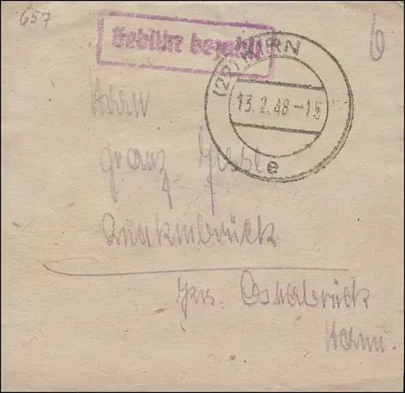 Payé comme un tampon de cadre sur bande de traction KIRN 13.2.1948