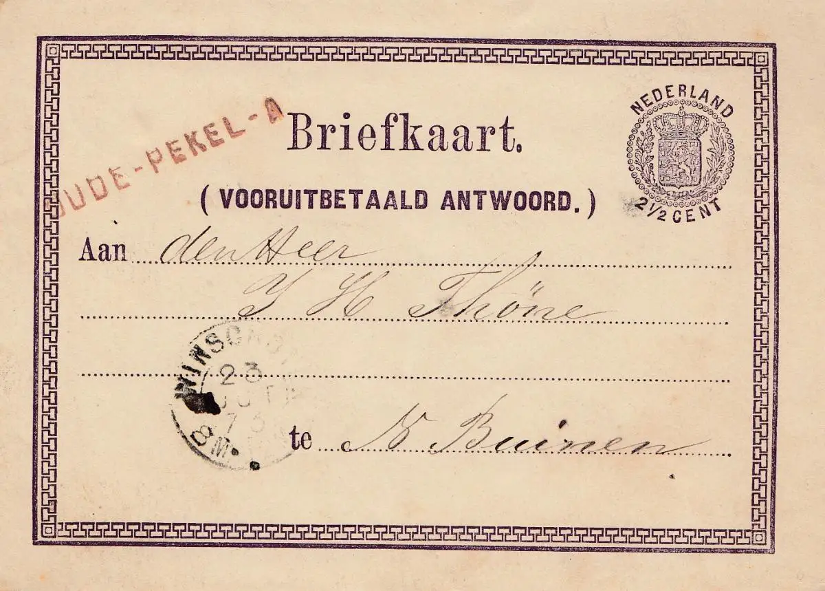 Pays-Bas: 1873: entier - Briefkaart