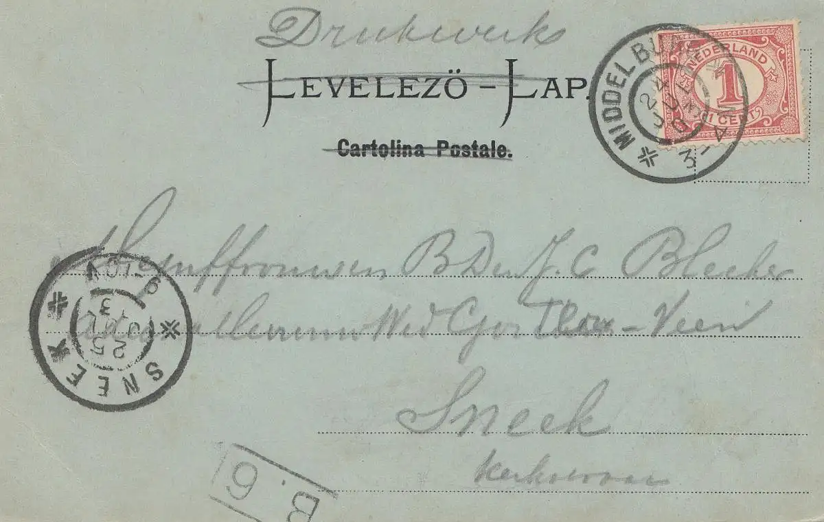 Pays-Bas: 1903: Levelezö Lap: Middel Burg vers Sneek - carte de vue