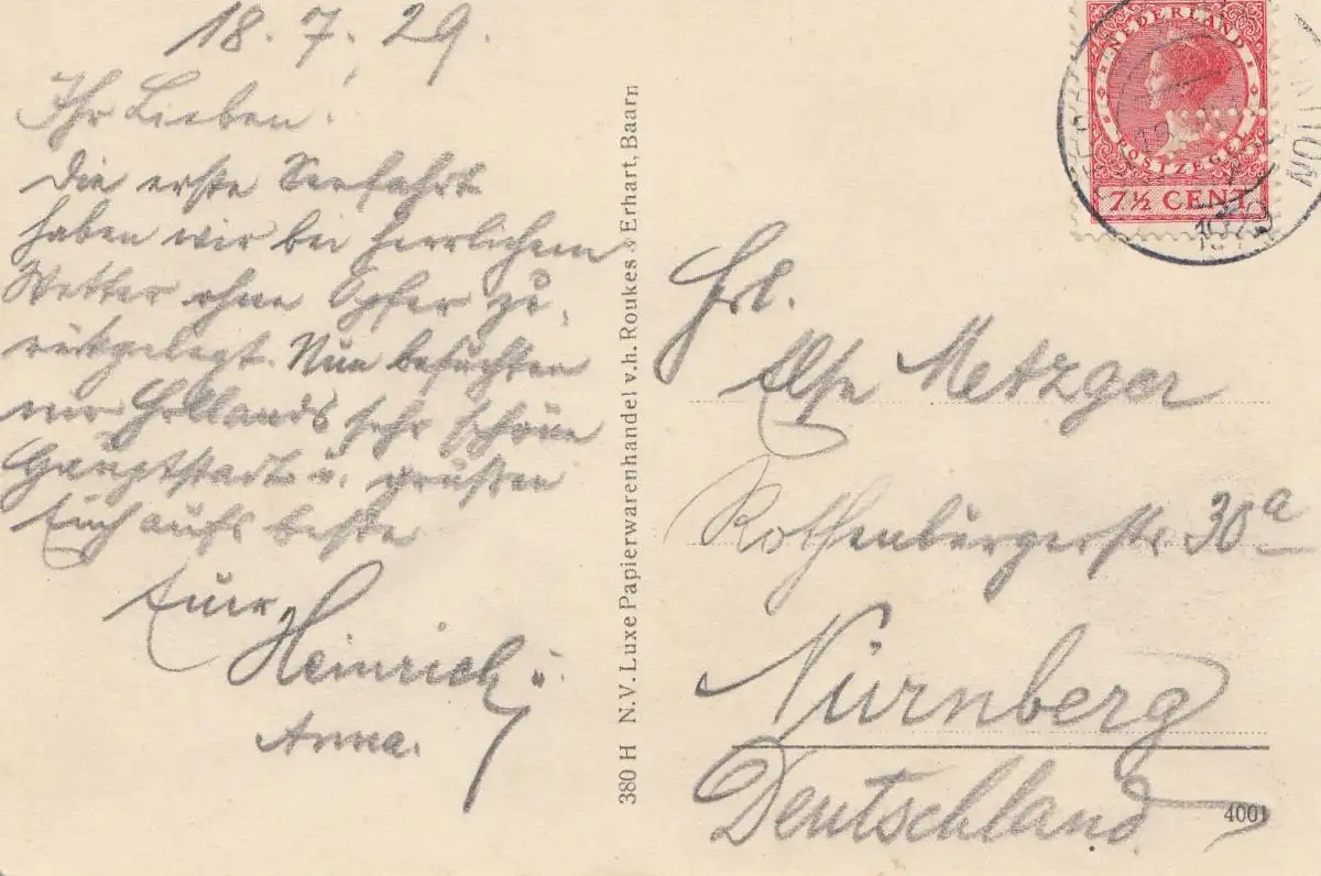 Pays-Bas: 1929: Carte d'Amsterdam après Nuremberg - Perfin