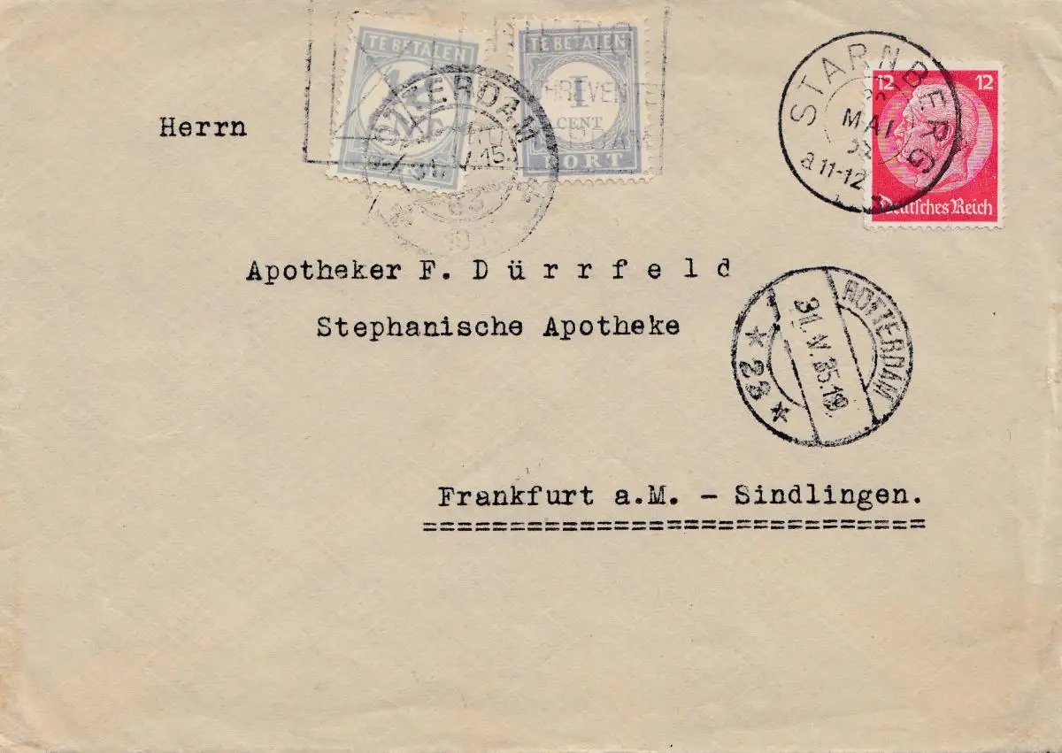 Pays-Bas: 1935: Starnberg vers Rotterdam TAXE