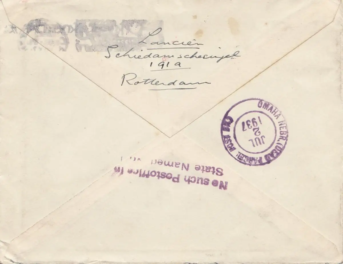 Pays-Bas: 1937: Rotterdam-UK: Return to writer