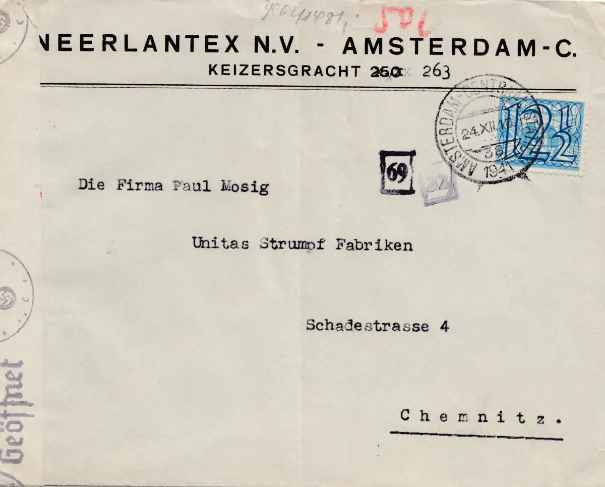 Pays-Bas: 1941 Amsterdam vers Chemnitz - OKW Censure