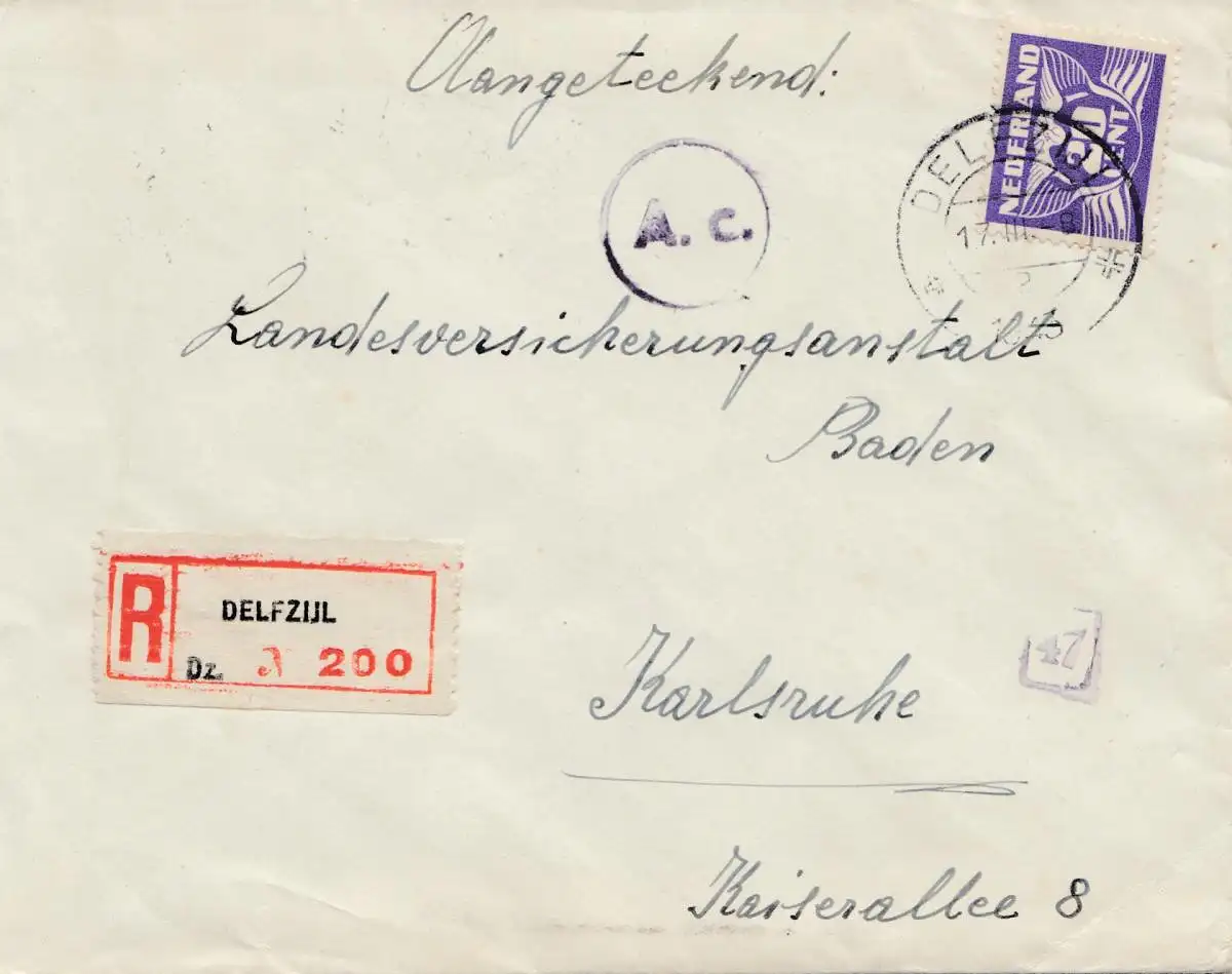 Pays-Bas: 1943: Inscription Delfzul nacah Karlsruhe - OKW Censur